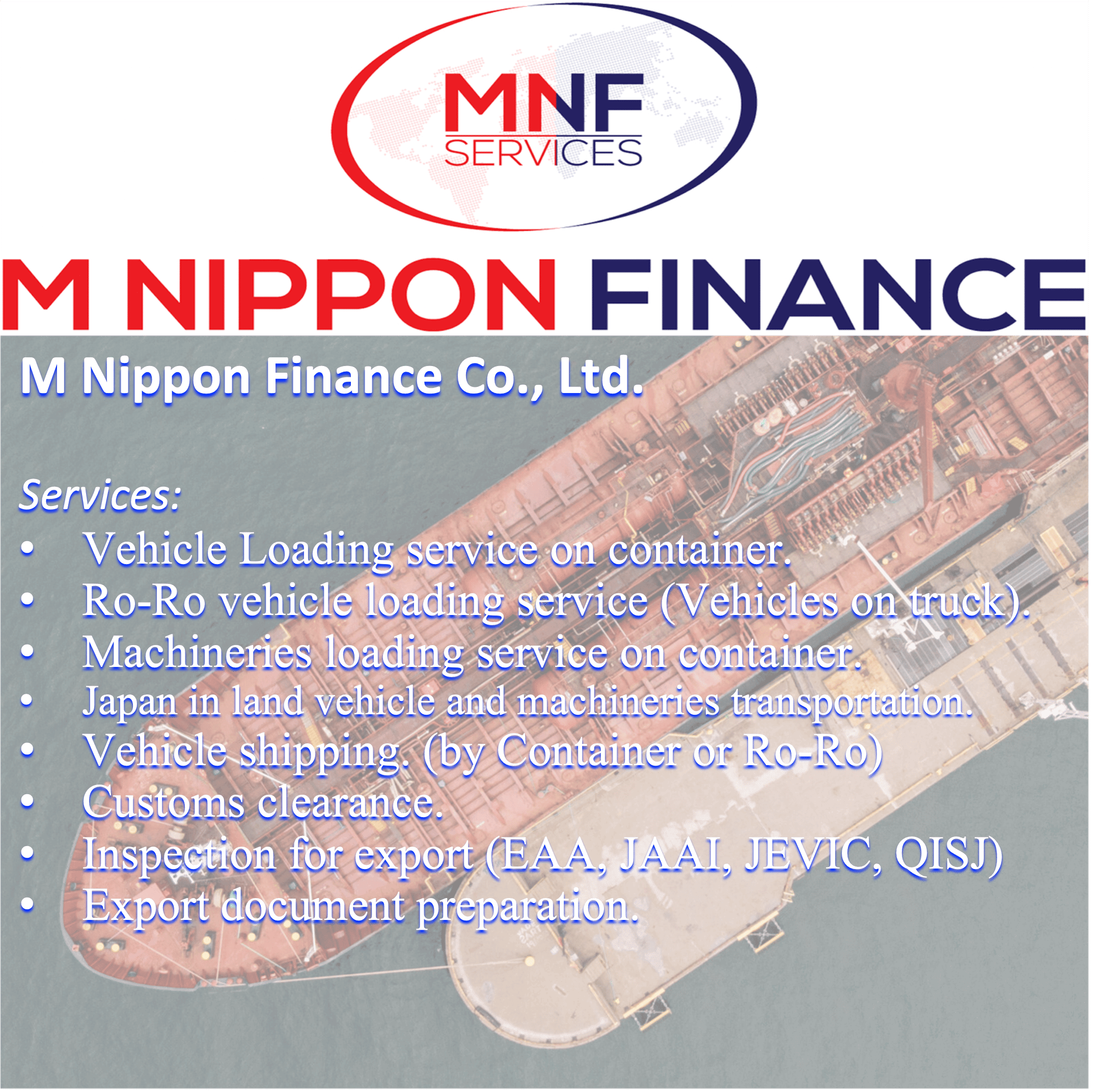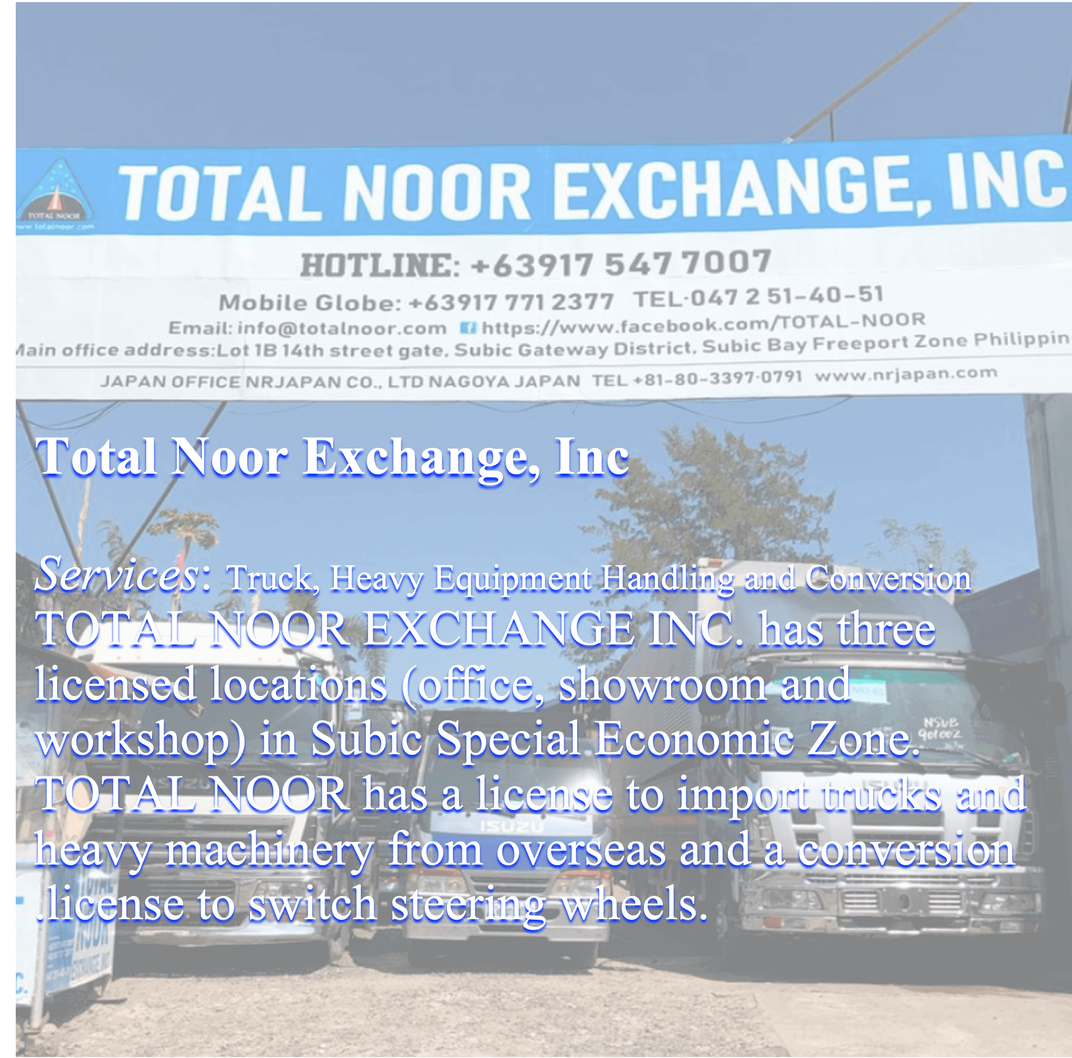 Main Export: Used Passenger Vehicles, Used Trucks, Used Machineries, Auto Parts, Motor Bikes.